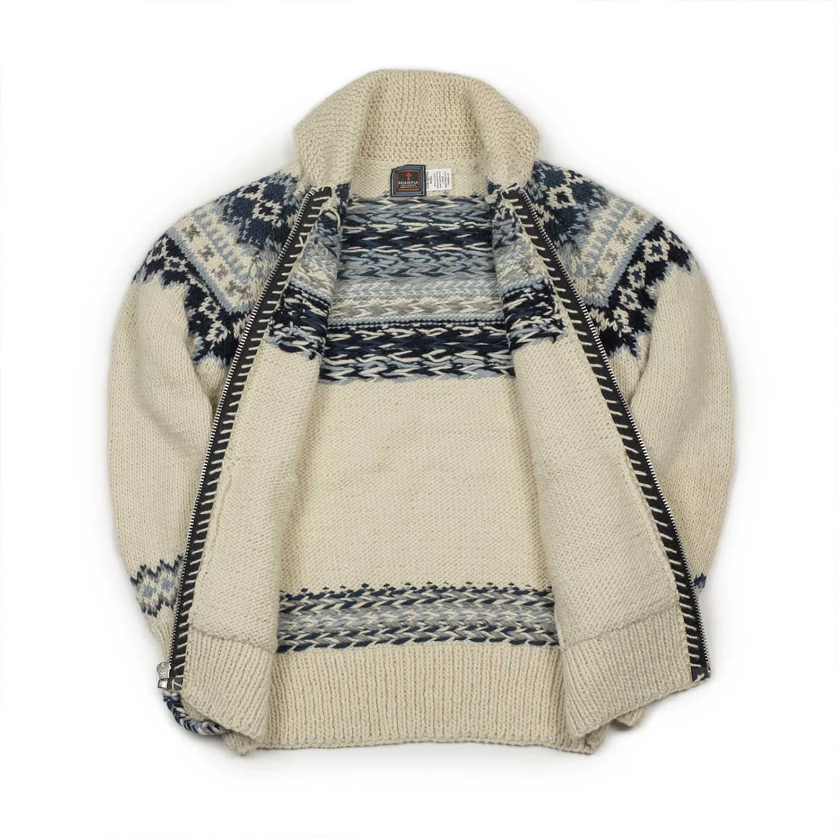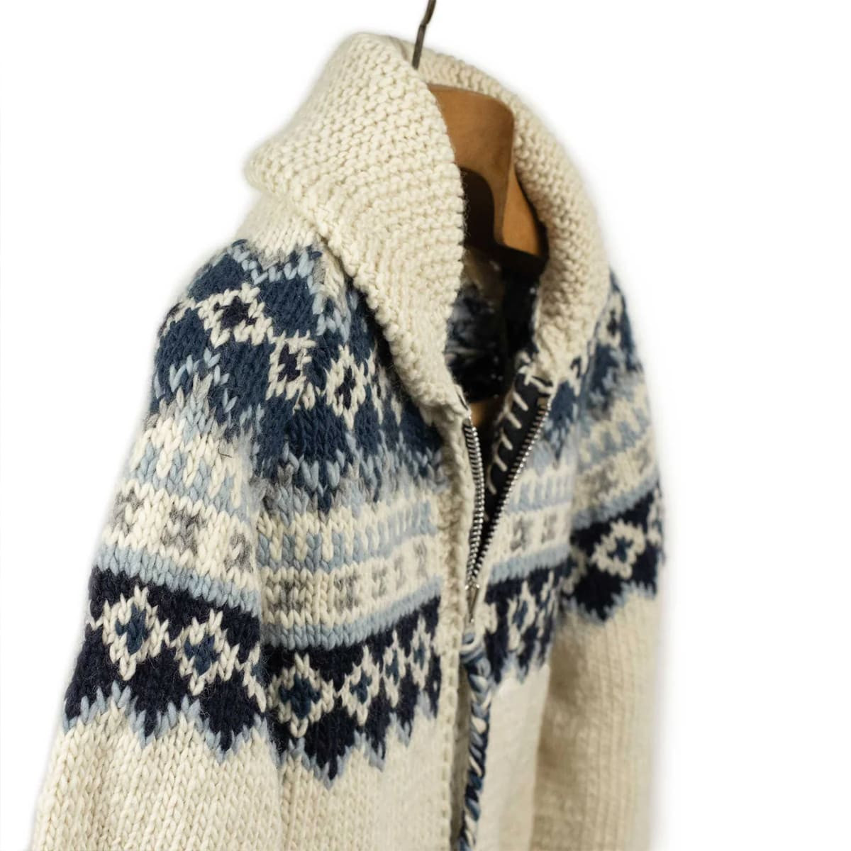 Handknit cowichan style zipped cardigan merino wool Cowichan style zipped cardigan - Ivory